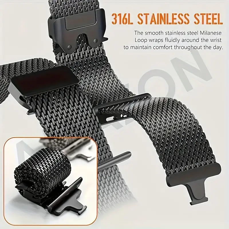Le bracelet de montre Milanaise en acier inoxydable premium 22MM de Strapify est un accessoire universel, confortable et résistant, compatible avec toutes les montres, qu’elles soient classiques ou connectées, idéal pour personnaliser votre style au quotidien avec élégance.
